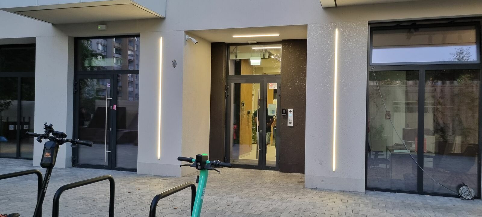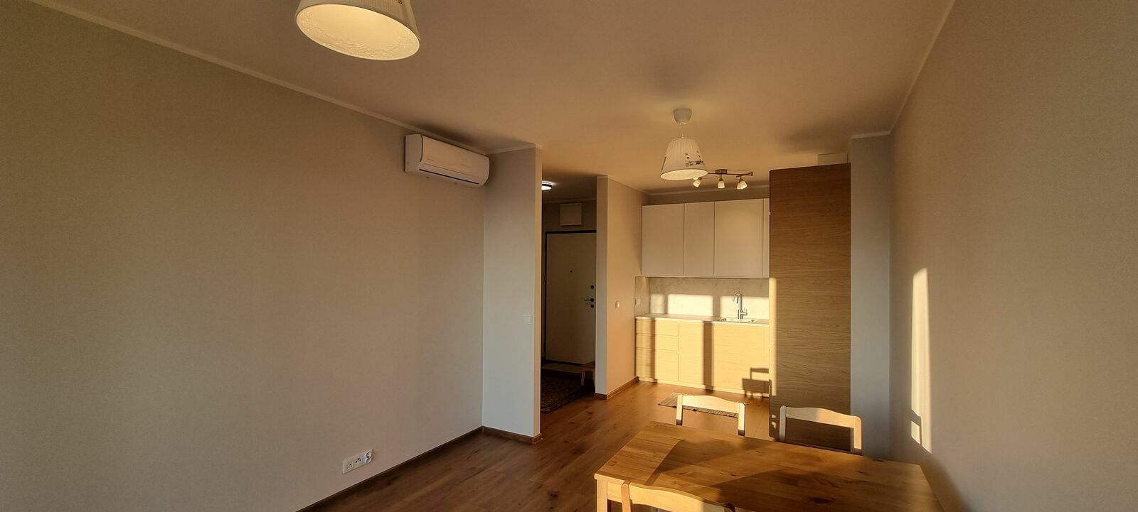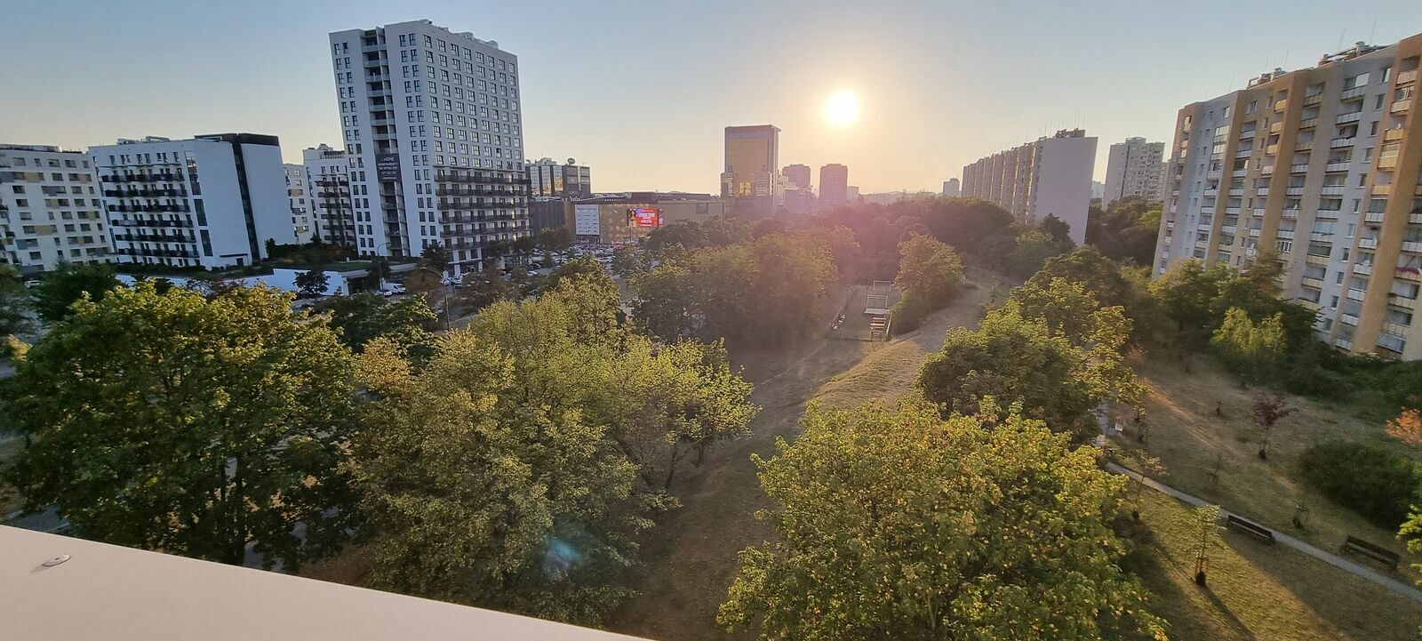 W mieszkaniu jest klimatyzacja, ogrzewanie i woda z sieci miejskiej . Ekspozycja okien na zachód. W sypialni szafa . Blok z 2024r. Okna wychodzą na zachód widok na drzewa , w perspektywie stadion narodowy , galerię Promenada . Budynek na osiedlu z ochroną i monitoringiem.