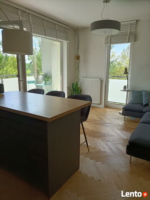 Od kwietnia!!! Mieszkanie usytuowane w 1 z najpiękniejszych miejsc Rembertowa, wśród zielonych parków ze starymi dębami, biegającymi wiewiórkami, ćwierkajacymi ptakami. Oaza ciszy i spokoju. Mieszkanie na najwyższym 4. piętrze o pow. 55mkw. W tym 3 pokoje z aneksem kuchennym w pełni umeblowane i wyposażone (sypialnia, gabinet, część dzienna, łazienka z prysznicem i wanną) oraz balkon. Budynek ma 3 lata. Wszystko nowiutkie i wykończone do życia "dla siebie". Sytuacja życiowa wymusiła zmiany. Możliwość garażu i komórki. Bliskość szkół wyższej, liceum i innych placówek. Delikatesy na parterze. Bliskość lasu, parków ale także dobra komunikacja SKM, autobusy, auto. Ekspozycja południowo- zachodnią pełna słońca. Mieszkanie ma duże przeszklone okno w salonie oraz wysokie okna w pozostałych pokojach. W oknach moskitiery oraz drewniane żaluzje bądź dogodne przesłony. W korytarzu duża szafa, mniejsze w pokojach. Meble na zamówienie, Vox, IKEA. Sprzęt Samsung, Bosh. Do podciągania drążek. Podłoga drewniana olejowosk dąb ułożona w jodelłkę. W łazience terakota.Miłe sąsiedztwo. Spokojna i bezpieczna okolica. Mnóstwo udogodnień, usług. W promieniu kilometra: poczta, bankomat, basen, siłownia, uczelnia, gabinet masażu, fryzjer, Day Spa, bistro, żabka, delikatesy, veturillo, przedszkole, liceum, szkoła podstawowa, uczelnia wyższa, stomatolog, weterynarz, przychodnia, bardzo uznana indyjska knajpa Taste od Curry, najlepsze hamburgery Nażarty, cukiernie i kawiarnia. Latem w parku yoga, tai chi bezpłatnie.