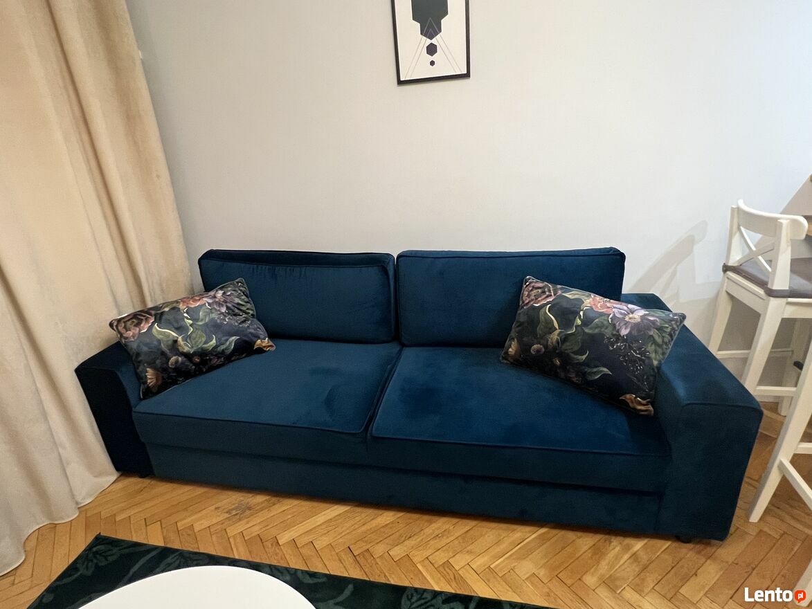 Mieszkanie składa się z salonu z aneksem kuchennym oraz sypialni wyposażonej w nową rozkładaną kanapę oraz szafę wnękową . Mieszkanie umeblowane , zabudowa kuchenna, kanapa z funkcją spania, dywan, stolik, wyposażenie AGD - lodówka,