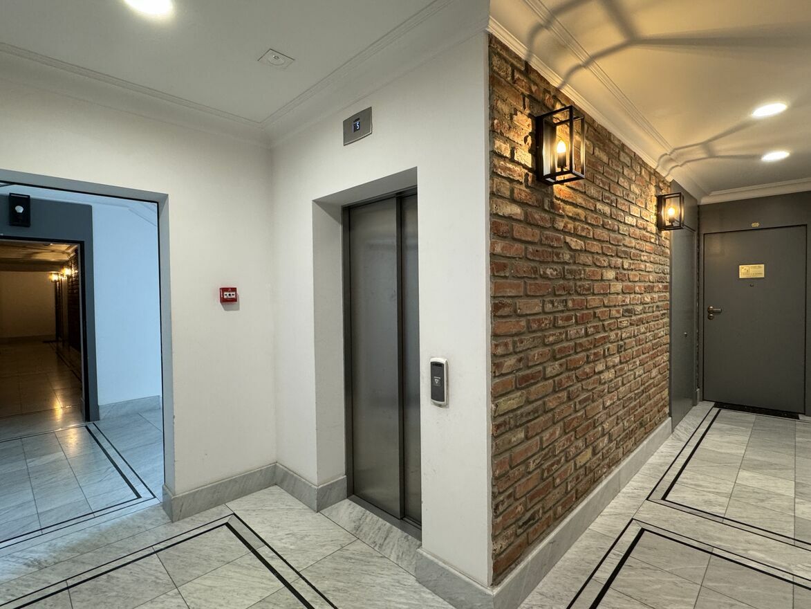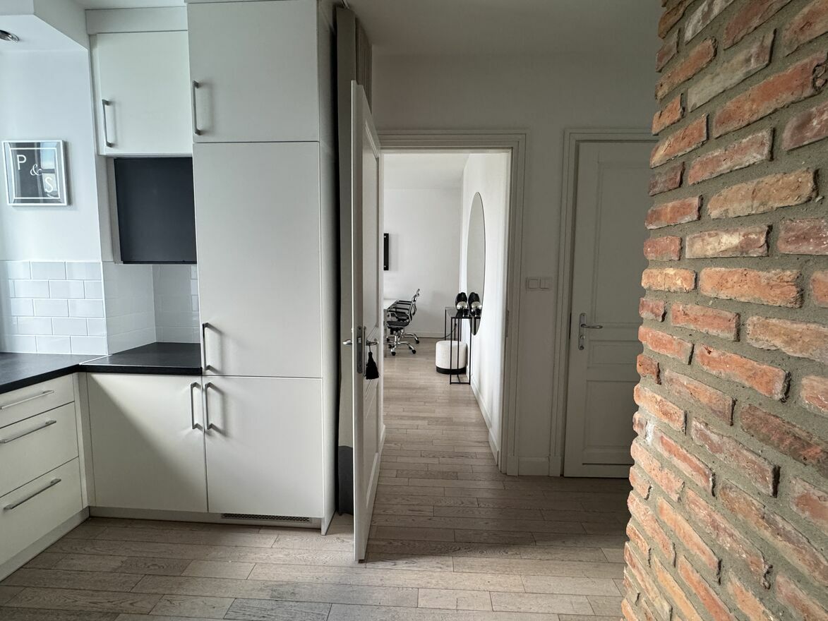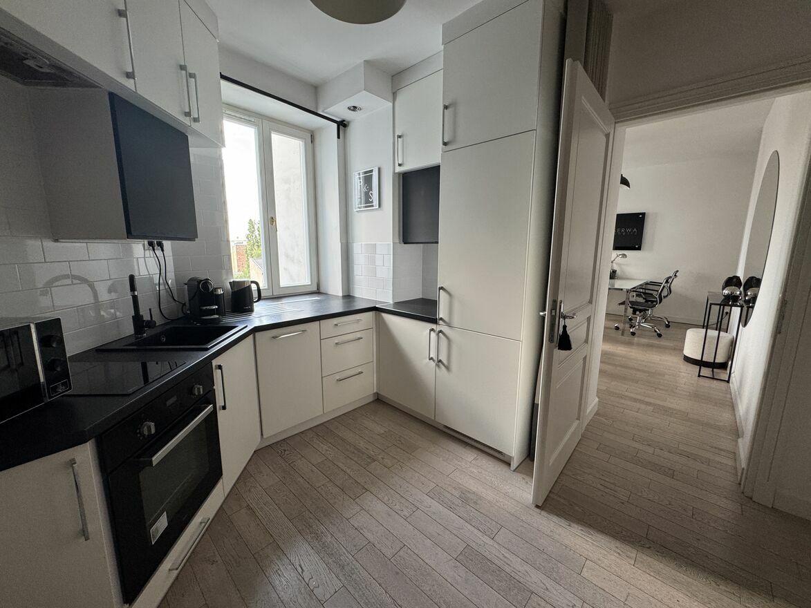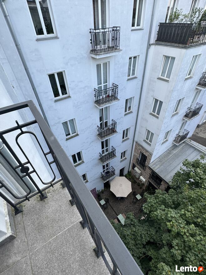 Wynajmę przestronną kawalerkę o powierzchni 39 m², położoną na 5. piętrze w 6-piętrowej, odrestaurowanej kamienicy przy ulicy Targowej 76 na Pradze Północ.Mieszkanie składa się z holu połączonego z kuchnią, w pełni wyposażonej łazienki oraz otwartego pokoju z wyjściem na balkon. W holu i pokoju znajdują się pojemne szafy w zabudowie. Mieszkanie jest jasne i funkcjonalne.