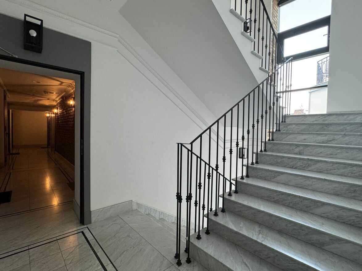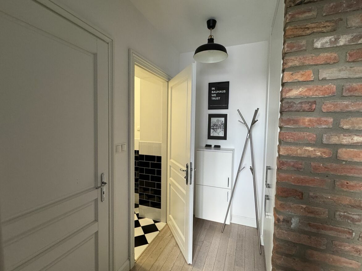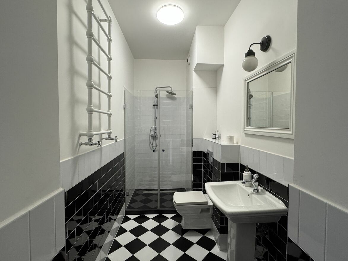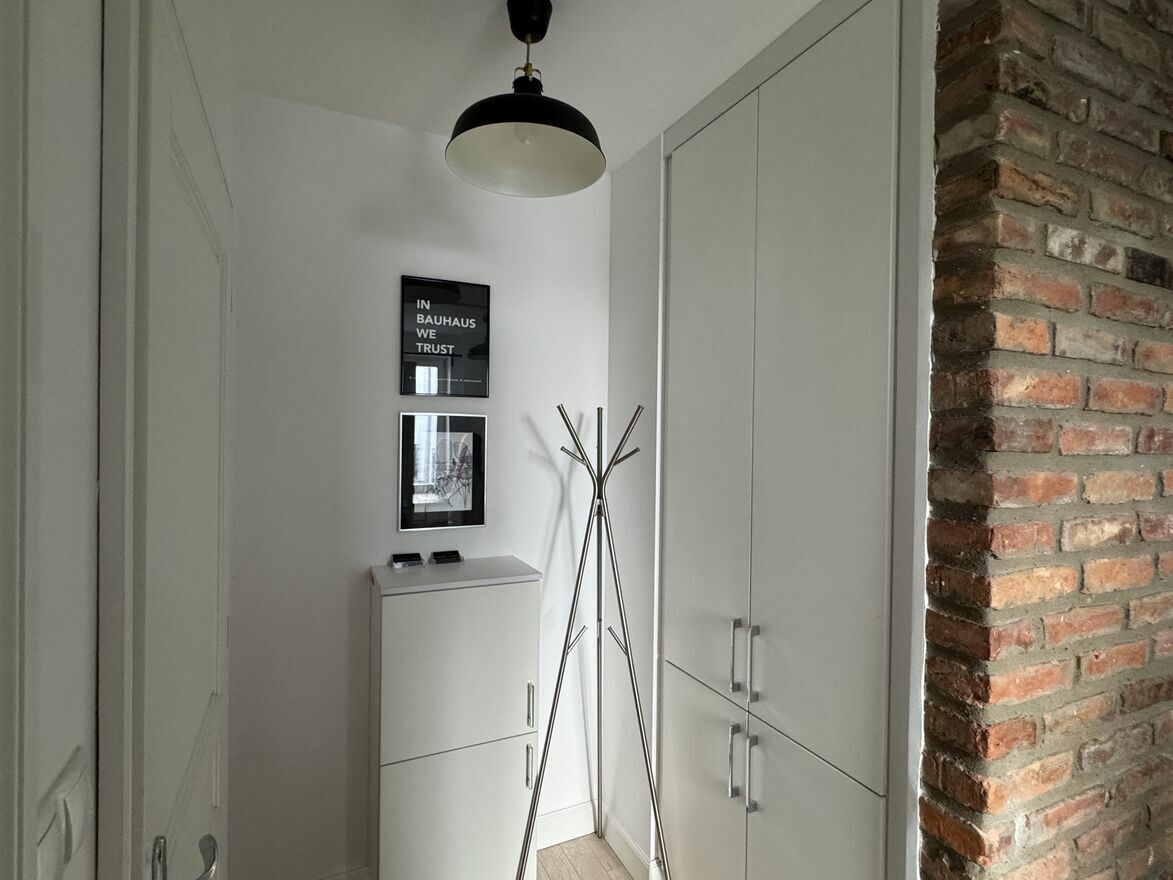 Wynajmę przestronną kawalerkę o powierzchni 39 m², położoną na 5. piętrze w 6-piętrowej, odrestaurowanej kamienicy przy ulicy Targowej 76 na Pradze Północ.Mieszkanie składa się z holu połączonego z kuchnią, w pełni wyposażonej łazienki oraz otwartego pokoju z wyjściem na balkon. W holu i pokoju znajdują się pojemne szafy w zabudowie. Mieszkanie jest jasne i funkcjonalne.