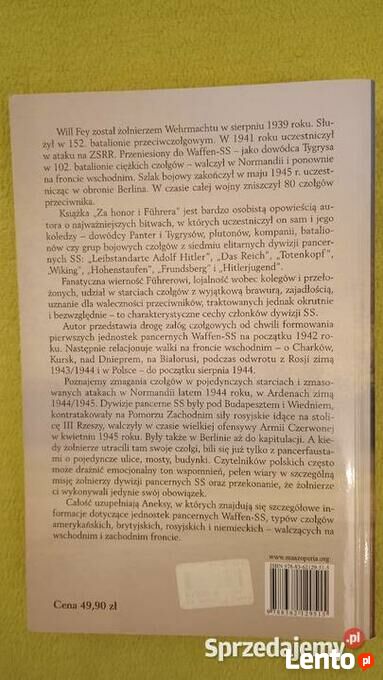 "ogłoszenie widoczne = Aktualne"Za honor.. bitwy pancerne waffen są 1943 - 1945 Willi Fey. Książka w miękkiej okładce, 480 stron, zdjęcia. Stan bardzo dobry bez uszkodzeń.