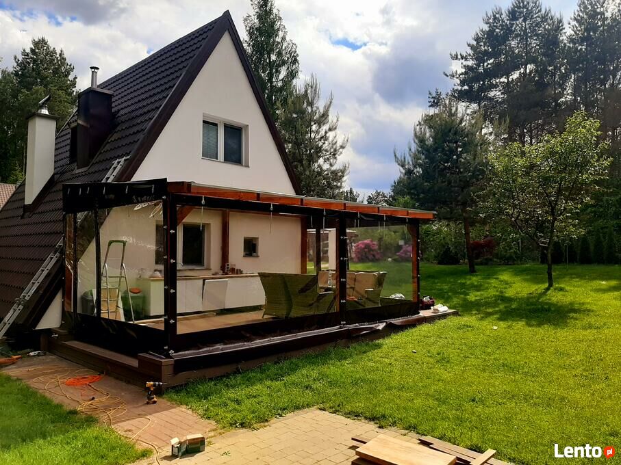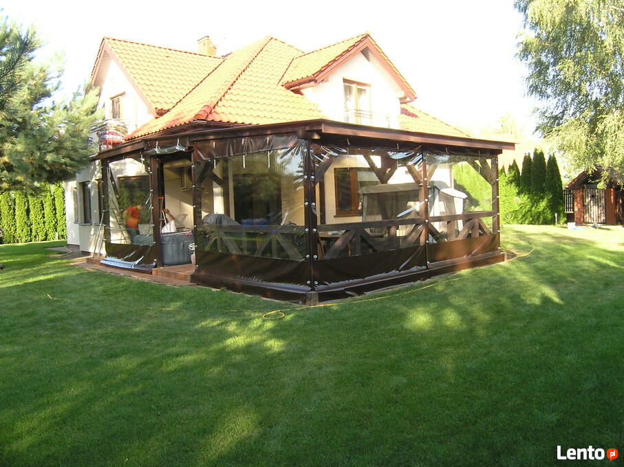 Zabudowa tarasu, altany, werandy z drewna, plandeki, folia