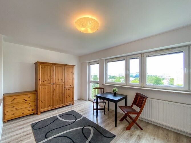 Mieszkanie o powierzchni 27,5 m² znajduje się na 9. piętrze w