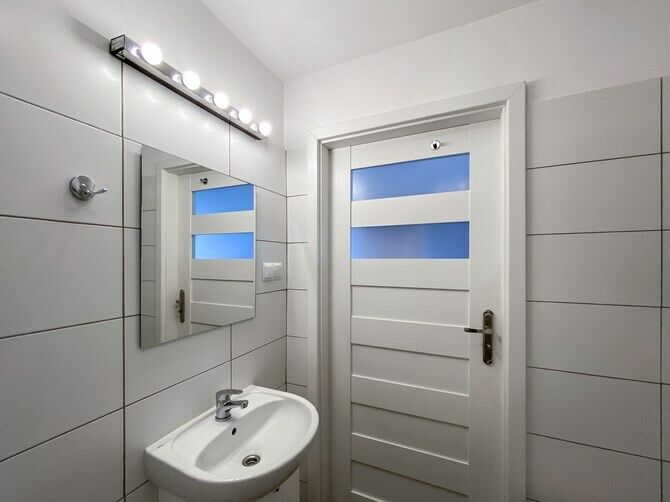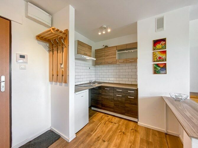 kuchennego, łazienki oraz przedpokoju z wideodomofonem.