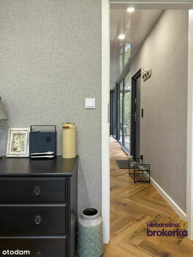 Dom sprzedawany jest w standardzie "pod klucz" – z pełnym, widocznym na zdjęciach wyposażeniem (w tym meble, AGD, a nawet "rowerek ćwiczeniowy" na tarasie). Nie wymaga absolutnie żadnych nakładów finansowych.