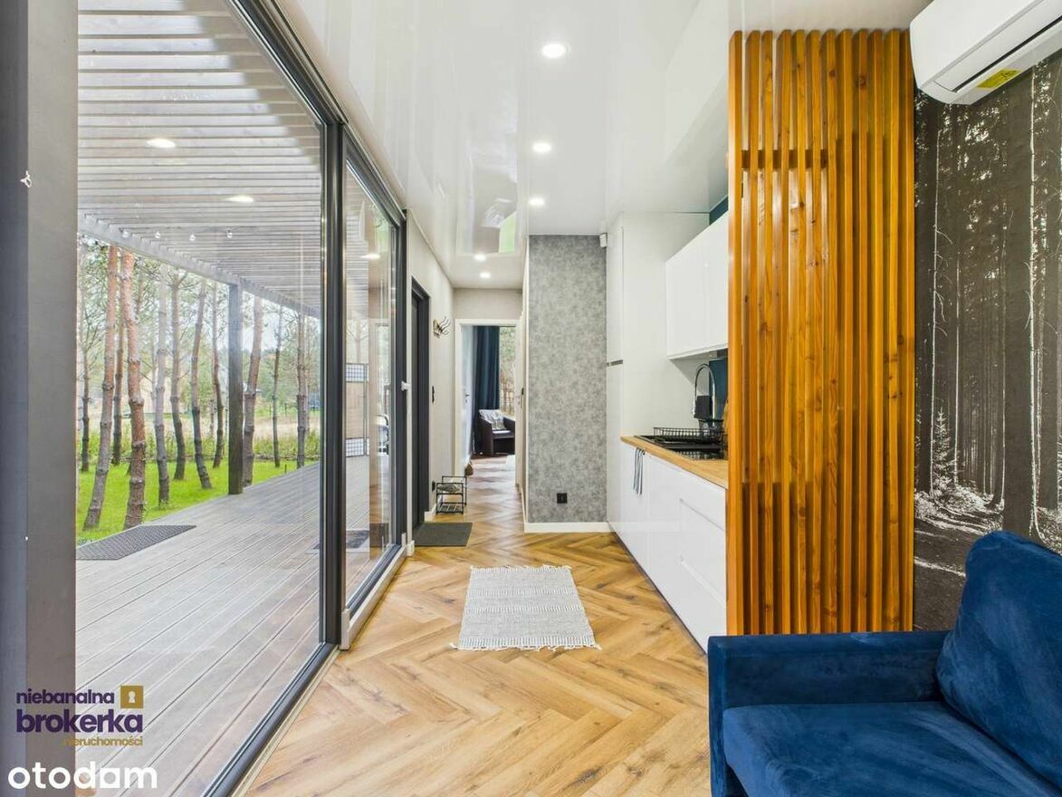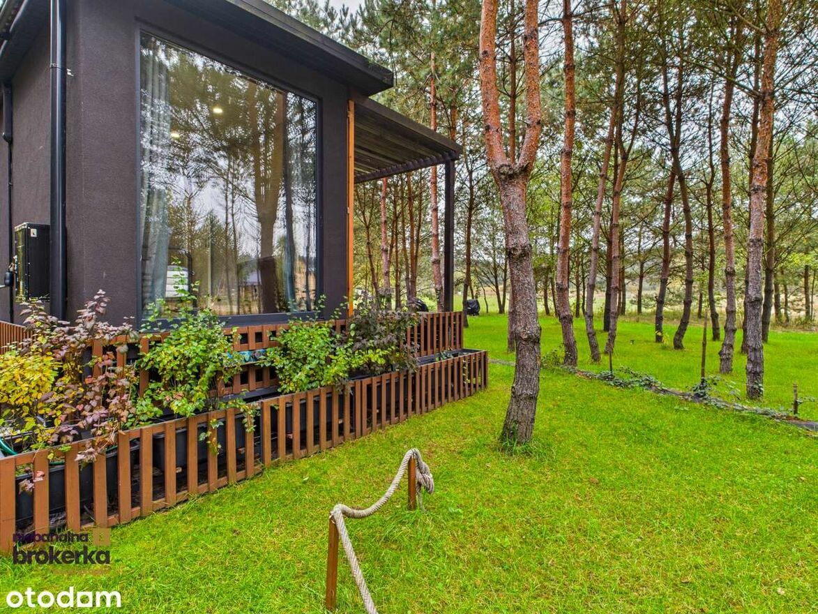 Na zalesionej działce o powierzchni 1250 m² znajduje się nowoczesny, całoroczny dom o przemyślanej powierzchni 26,4 m². Zaprojektowany z dbałością o każdy detal, oferuje wszystko, czego potrzeba do komfortowego wypoczynku lub życia: