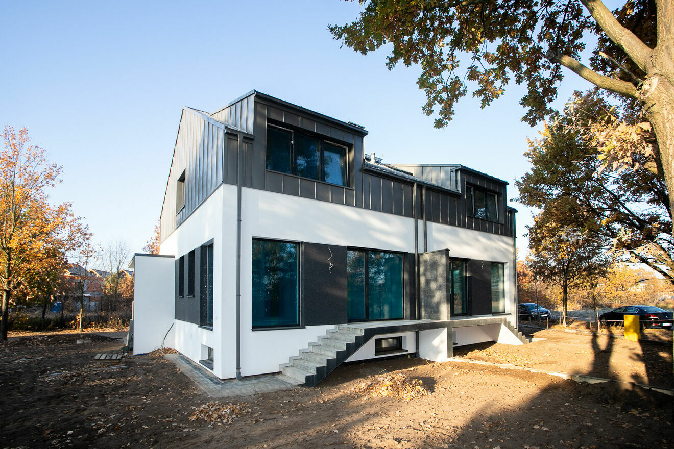 Nie płacisz podatku PCC 2Do sprzedaży wyjątkowo przestrzenny /wnętrza od 3 m do 5m / dom jednorodzinny w stanie deweloperskim podwyższonym w zabudowie bliźniaczej wybudowany wg.indywidualnego nowoczesnego projektu Rezydencja Dwa Szafiry przy ul.Wacława Wojtyszki. Dom o powierzchni całkowitej173 m2 na działce 390m2 usytuowany przy cichej ulicy wybudowany z wysokiej klasy materiałów.Bryła domu wyróżnia się nowoczesnym, minimalistycznym designem, który harmonijnie wpisuje się w otaczającą zieleń. Duże, panoramiczne okna nie tylko nadają budynkowi elegancji, ale również wpuszczają do wnętrza mnóstwo naturalnego światła, co tworzy jasną i przestronną atmosferę. Dzięki temu dom jest nie tylko piękny z zewnątrz, ale również wyjątkowo przytulny w środku.Ciekawe wnętrze ,wysokie pomieszczenia .