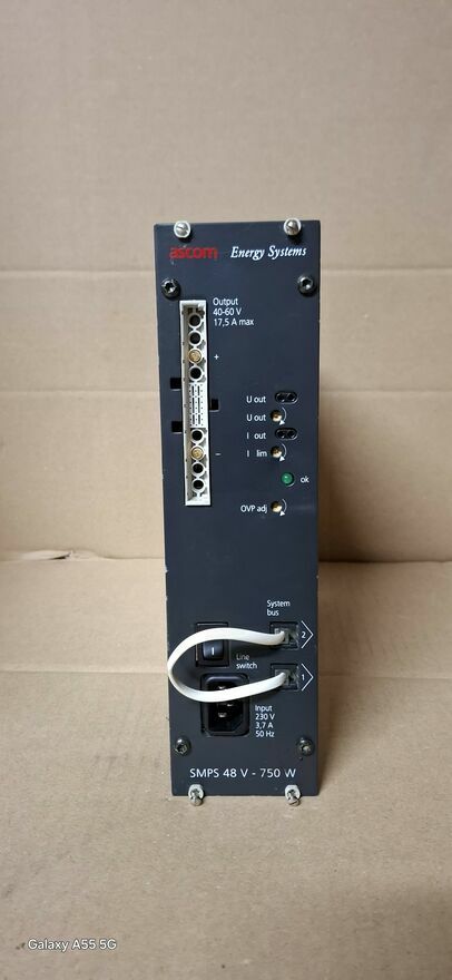 Sprzedam .Urządzenie to zasilacz impulsowy (SMPS - Switched-Mode Power Supply) firmy Ascom Energy Systems o mocy 750 W i napięciu wyjściowym 48 V. Służy do konwersji napięcia zmiennego 230 V na stabilizowane napięcie stałe 40-60 V, używane do zasilania urządzeń telekomunikacyjnych, systemów alarmowych, a także w przemyśle.Zastosowanie: Urządzenia firmy Ascom są stosowane w różnych sektorach, Rozwiązania Ascom często koncentrują się na komunikacji bezprzewodowej, systemach alarmowych i powiadomień, a także na monitorowaniu zużycia energii i efektywności pracy w przemyśle.