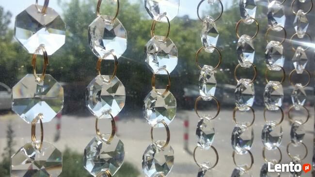 Zasłona kryształowa do dowolnej aranżacji.Cena obejmuje metr bieżący łańcucha kryształków- ośmiokątów kryształowych 16 mm. Kółka łączące w kolorze złotym.