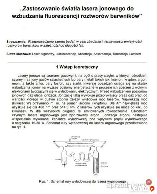 "Zastosowanie światła lasera jonowego do wzbudzania fluorescencji roztworów barwników"