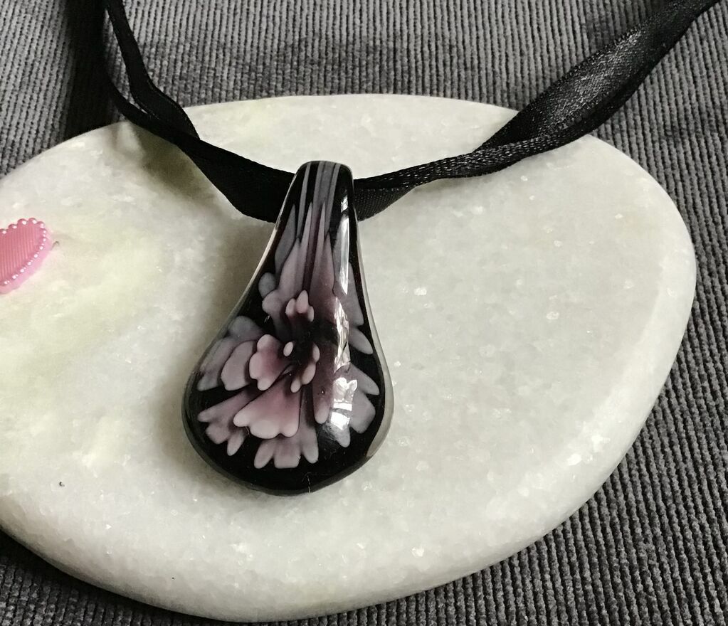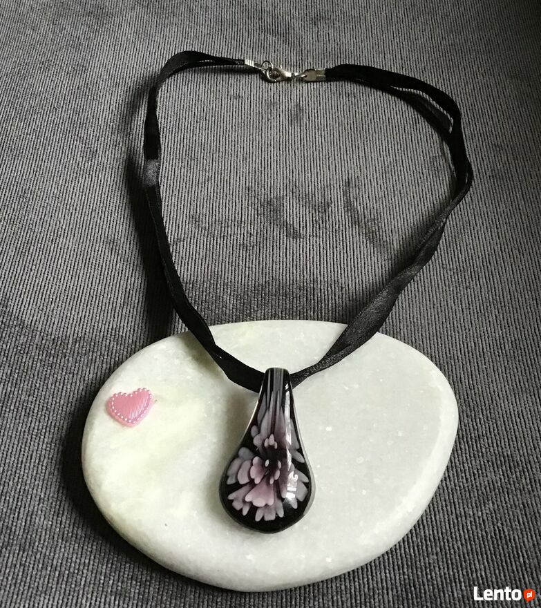 Piękna zawieszka 3D ze szkła weneckiego.Duża, okazała. Tasiemka ma długość 50 cm.