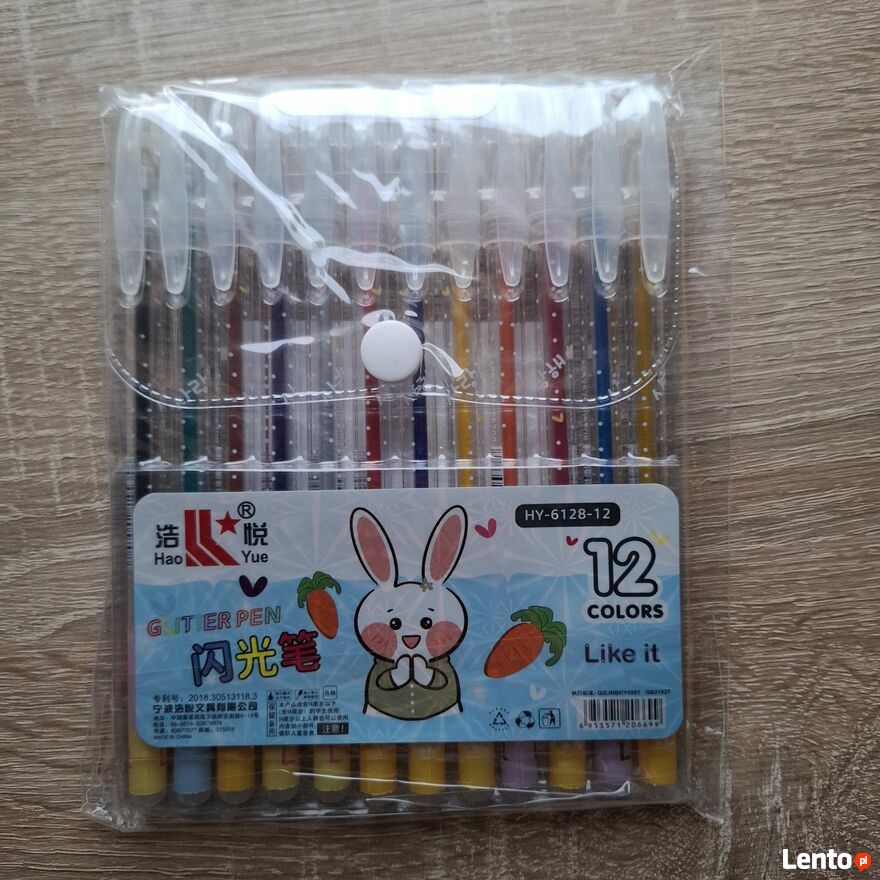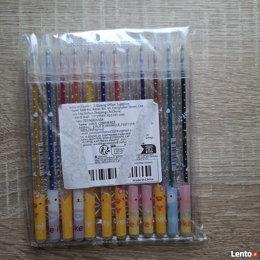 Zestaw 12 brokatowych długopisów żelowych – nowy, bez metki