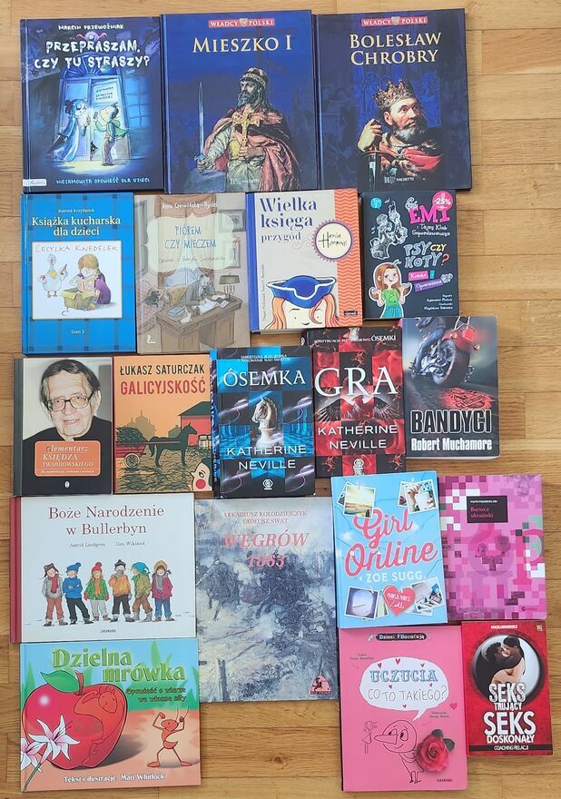 "ogłoszenie widoczne == AKTUALNE"Zestaw 41 książek dla dorosłych, młodzieży i dzieci różnych. Książki w stanie dobrym lub bardzo dobrym.