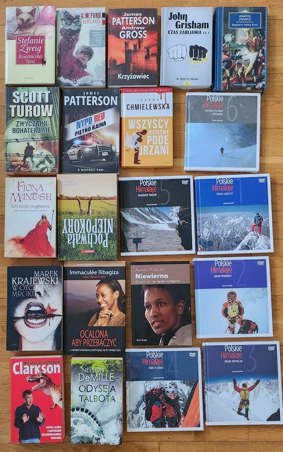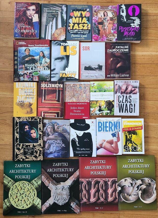 "ogłoszenie widoczne == AKTUALNE"Zestaw 44 sztuk książek różnych autorów. Książki w stanie dobrym lub bardzo dobrym bez dedykacji, stempli bibliotecznych i przykrych zapachów. Do zakupu w zestawie lub pojedyńczo, 10 zł za egz.