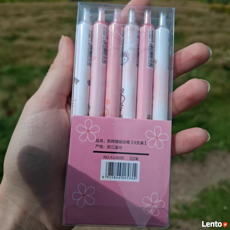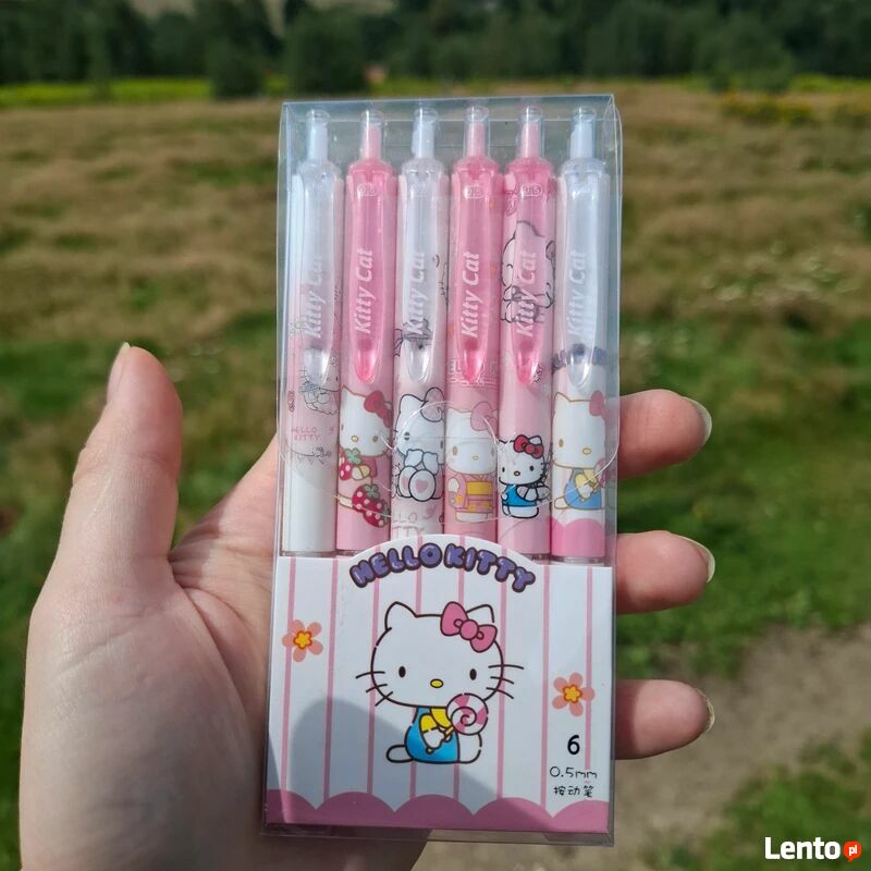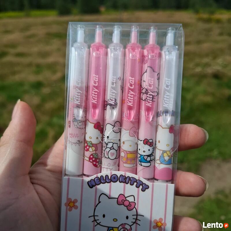 Sprzedam nowy zestaw 6 długopisów Hello Kitty – w kolorach różowym i białym, każdy z uroczym motywem tej kultowej postaci. Długopisy mają cienką końcówkę 0.5 mm, idealną do precyzyjnego pisania, notatek i rysowania.