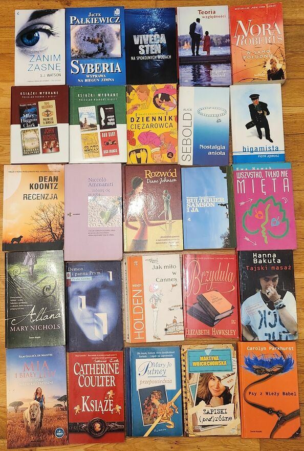 "ogłoszenie widoczne == AKTUALNE"Zestaw 70 sztuk książek różnych autorów, książki - głównie literatura dla kobiet. Książki w stanie dobrym bez dedykacji, stempli bibliotecznych I przykrych zapachów. Do zakupu w zestawie lub pojedyńczo, 10 zł za egz.