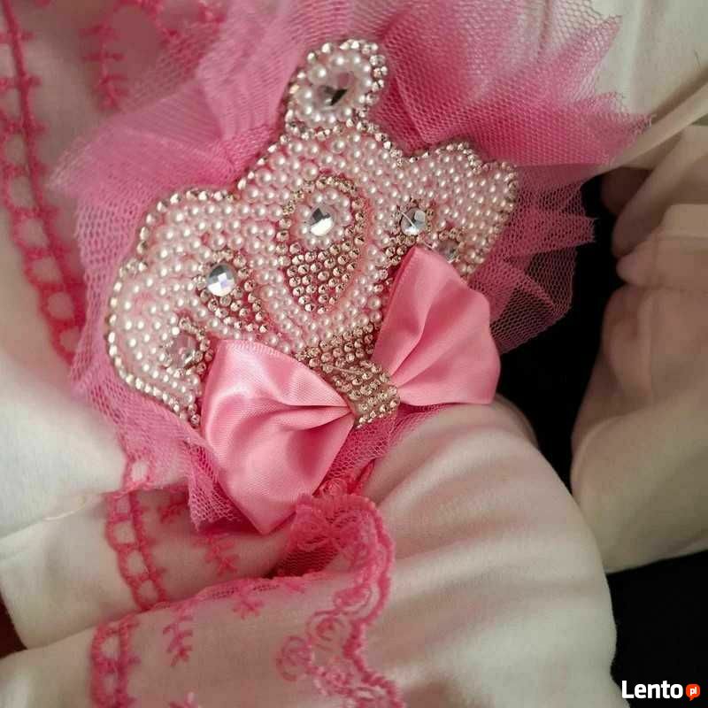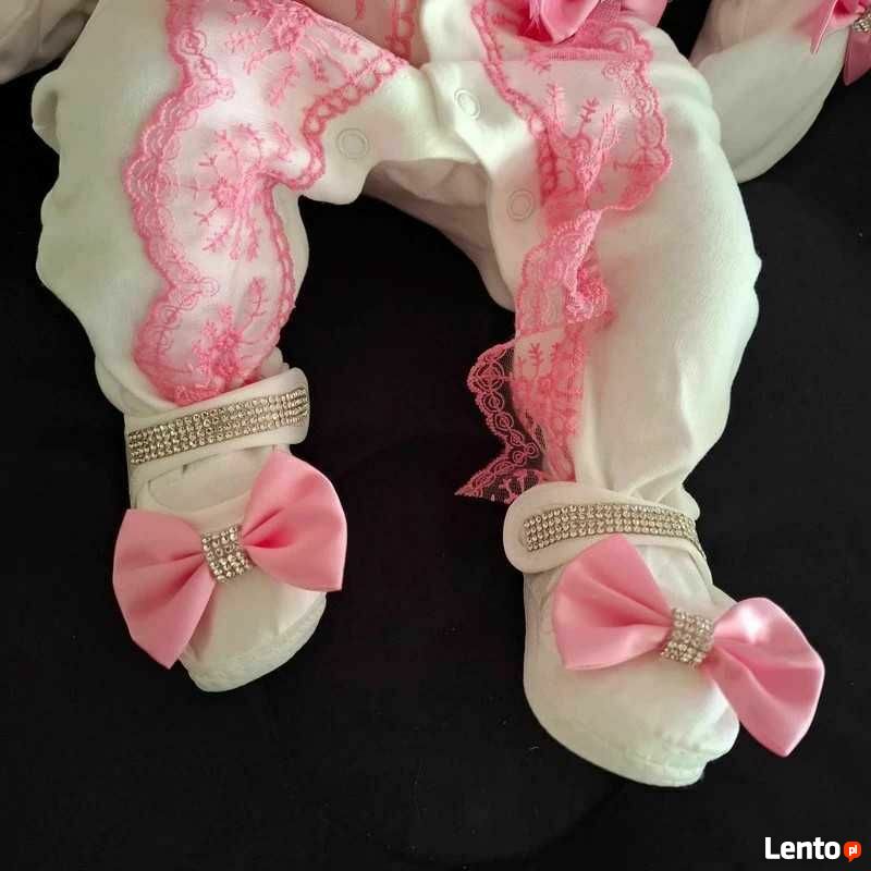 Stan: nowy bez metki Rozmiar: 56–62 cm / 1–3 miesiące Kolor: pudrowy róż Materiał: bawełna Styl: baby girl, klasyczny