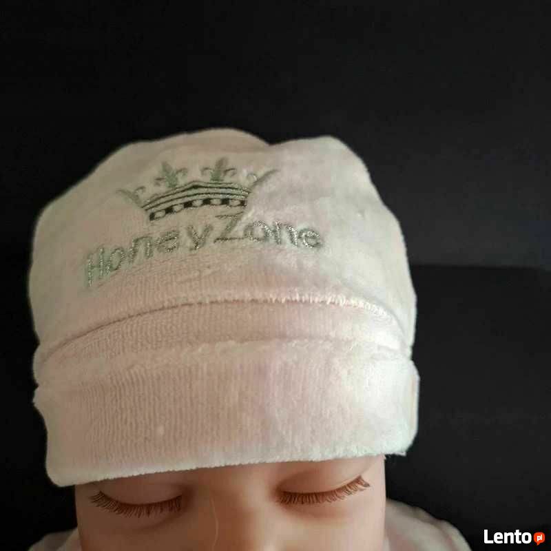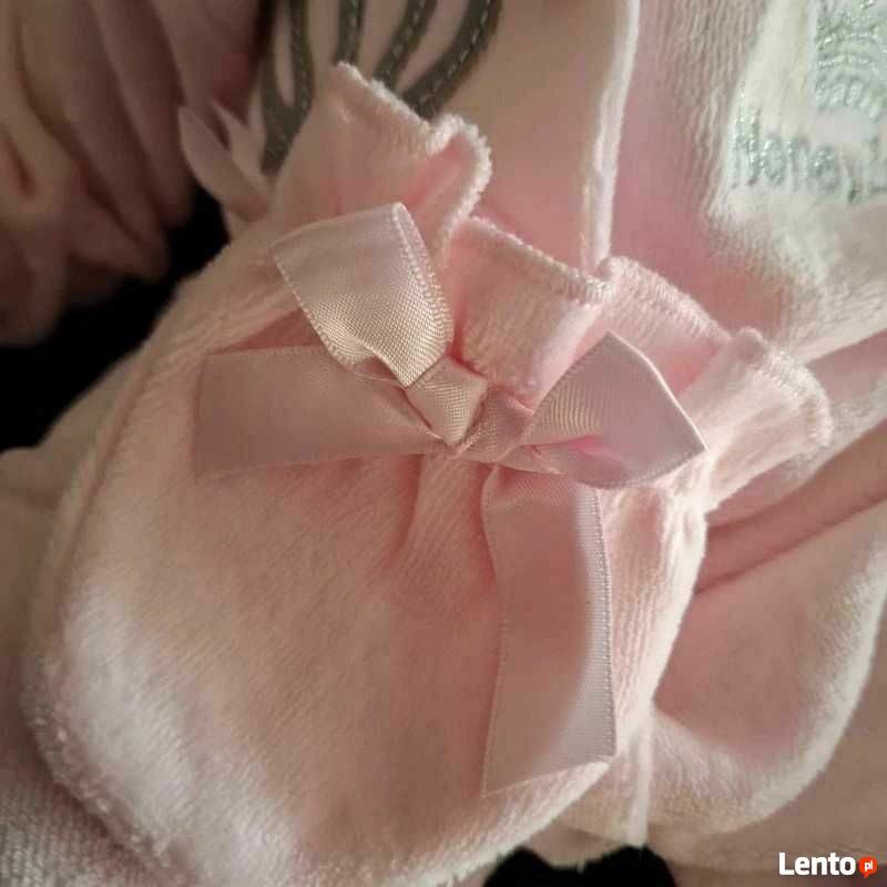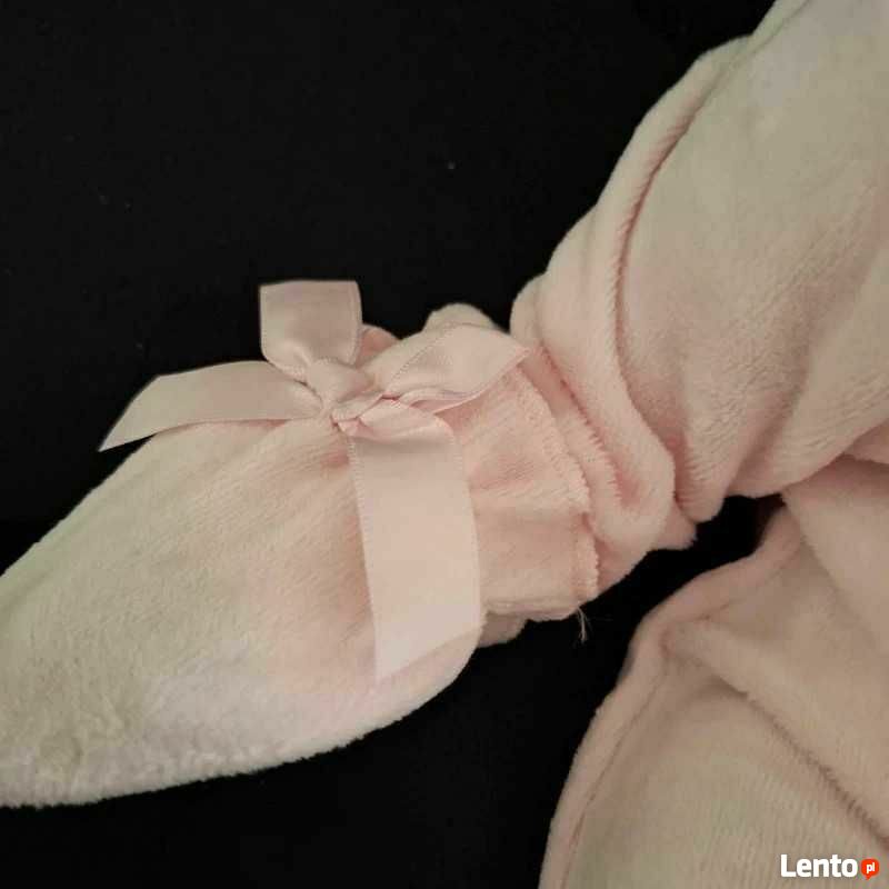 Nowy zestaw niemowlęcy dla dziewczynki w rozmiarze 62–68 cm (3–6 miesięcy), bez metki. W skład kompletu wchodzą: pajacyk, czapeczka oraz rękawiczki niedrapki. Kolor pudrowego różu, materiał welur — miękki i przyjemny dla skóry dziecka, estetyczny i elegancki.Model klasyczny, starannie wykonany. Idealny jako wyprawka, prezent na narodziny lub stylizacja do sesji zdjęciowej.