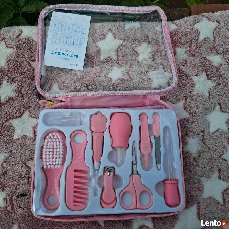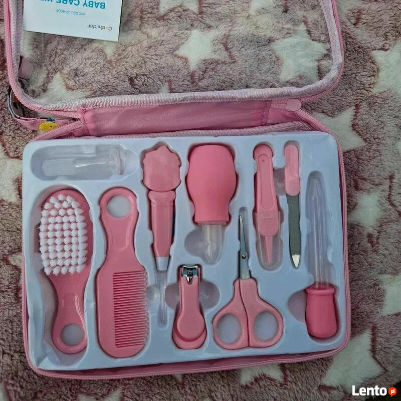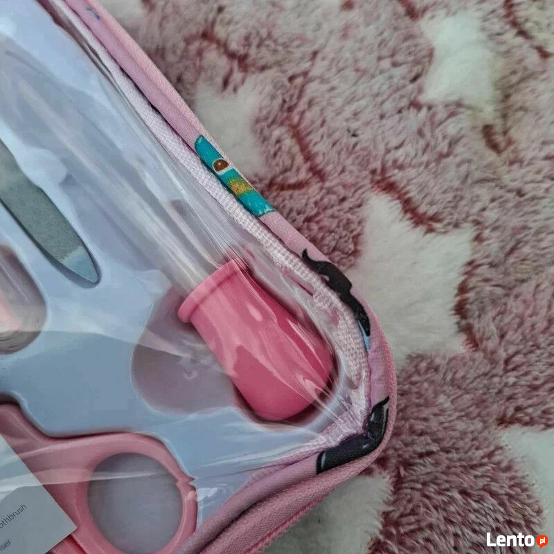 Uroczy zestaw pielęgnacyjny dla niemowlęcia Nowy, nieużywany, bez metki – idealny na prezent, wyprawkę lub podróż dla małej dziewczynki. Zestaw zawiera 10 przydatnych akcesoriów, w tym wyjątkową łyżeczkę LED do czyszczenia uszu, nożyczki, szczotkę, grzebień, obcinacz do paznokci, pipetę, szczoteczkę silikonową i więcej. WYSYŁKA OLX, VINTED LUB INACZEJOpakowanie: kosmetyczka z przezroczystą klapką i uroczym motywem misiów Stan: nowy, bez metki Kolor: różowy Wiek: od 0+ miesięcy Uwaga: kosmetyczka ma niewielkie wgniecenie – pokazane na zdjęciu, nie wpływa na używanie