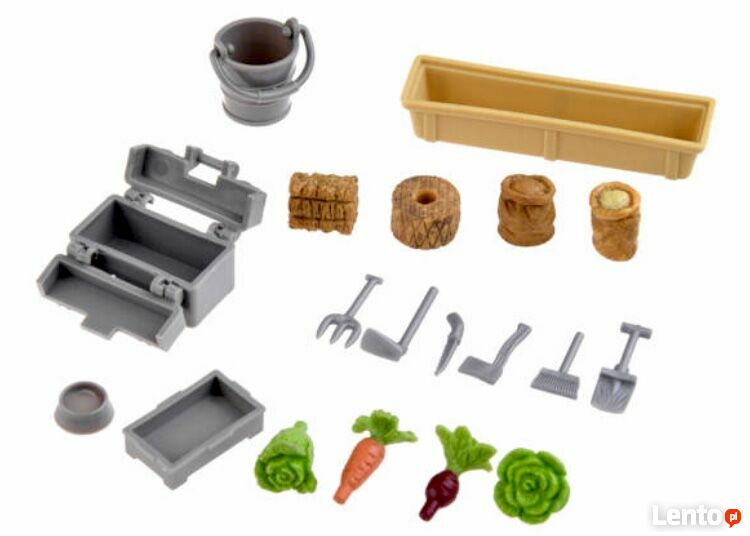Nie zapomniano także o narzędziach i akcesoriach niezbędnych w pracy na farmie. Widły, łopata, kopaczka, siekiera, miotła - wszystko, co potrzebujesz, aby zadbać o swoje rolnicze królestwo. Dzięki workom z ziarnem, balu słomy, kostce siana i karmie dla zwierząt, twoje zwierzęta będą szczęśliwe i zadowolone.