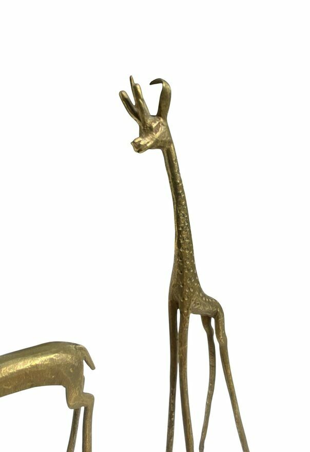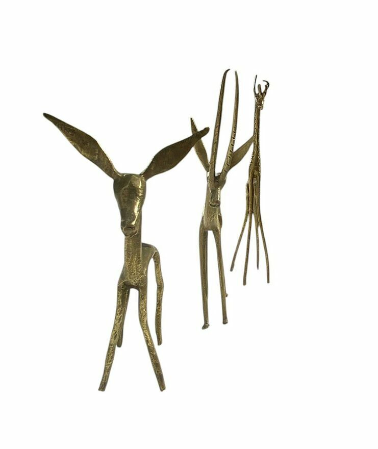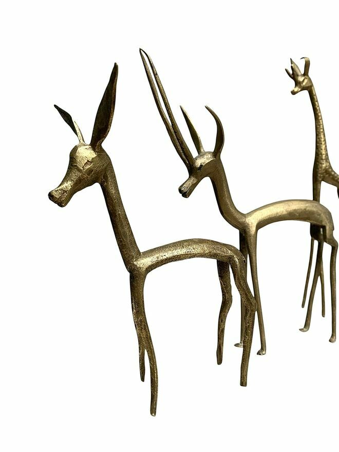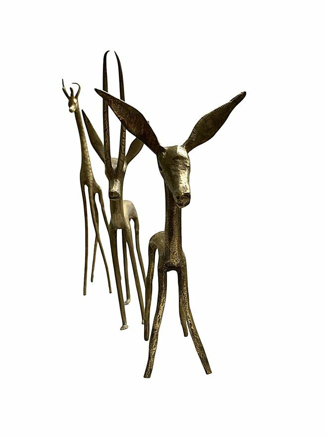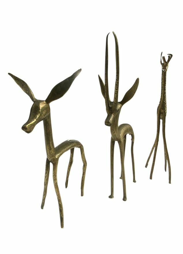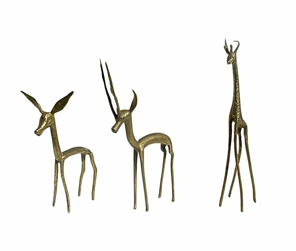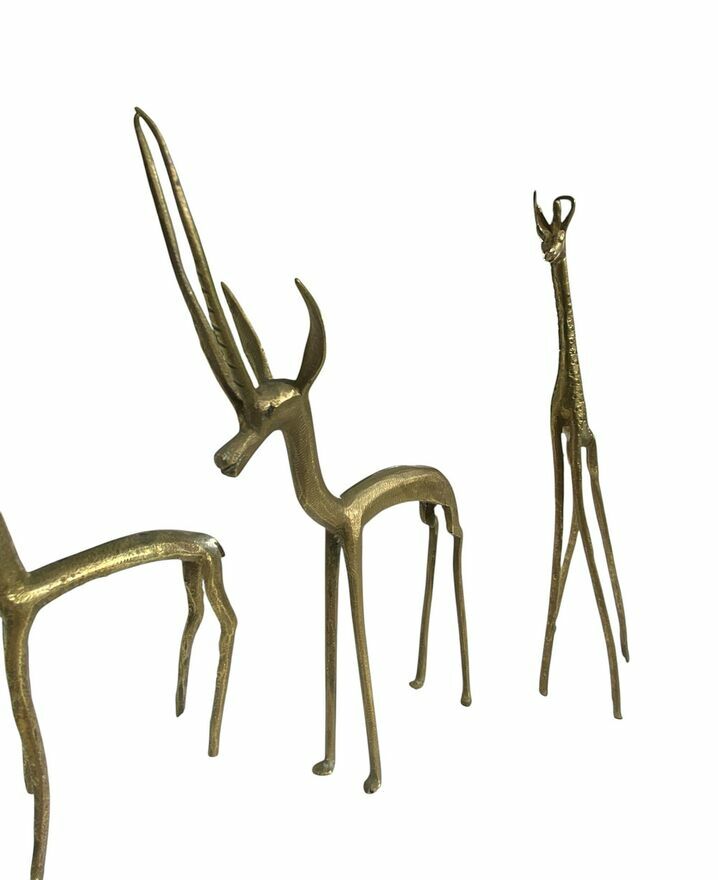 Zestaw figurek mosiężnych retro vintage, zwierzęta z Safarikomplet 3 szt: gazela, antylopa, żyrafa