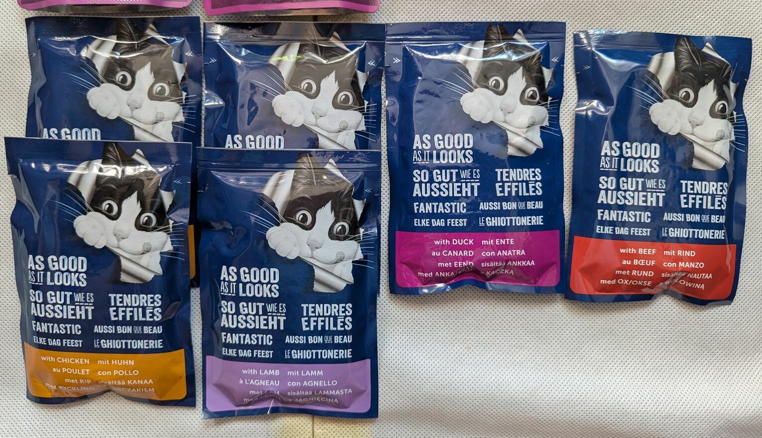 Łącznie 21 sztuk. Różne smaki и tekstury (sos oraz galaretka), co jest idealne dla wybrednego kota.
