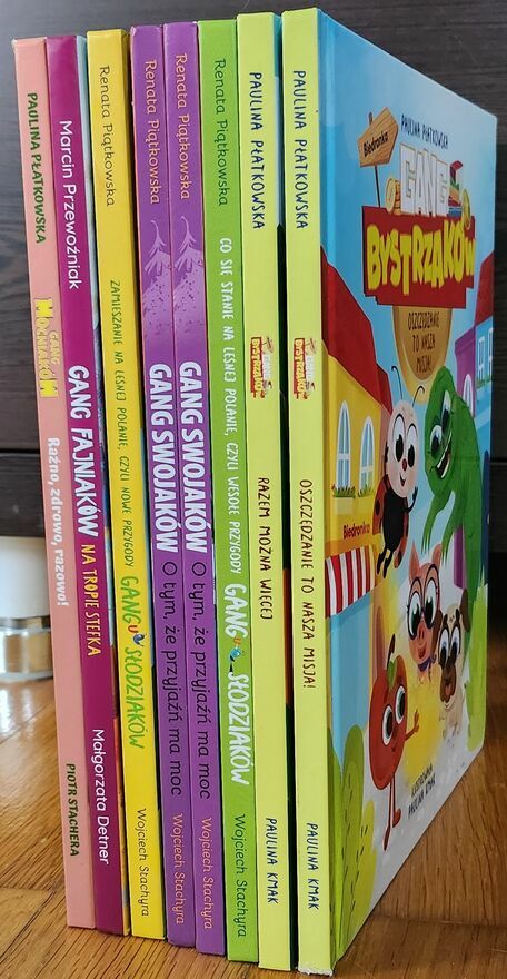 "ogłoszenie widoczne == AKTUALNE"Zestaw 8 książek gang słodziaków, swojaków, bystrzaków, fajniaków, mocniaków. Książki w twardych okładkach bez uszkodzeń. Cena za zestaw 60 zł.