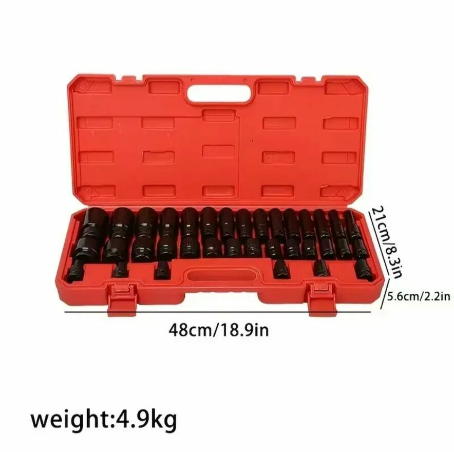 ZESTAW NASADEK UDAROWYCH 35 EL. 1/2" – WALIZKAProfesjonalny zestaw 35 nasadek udarowych przeznaczony do pracy z kluczami udarowymi oraz grzechotkami. Idealny wybór do warsztatu samochodowego, serwisu, wulkanizacji oraz do użytku domowego i garażowego.