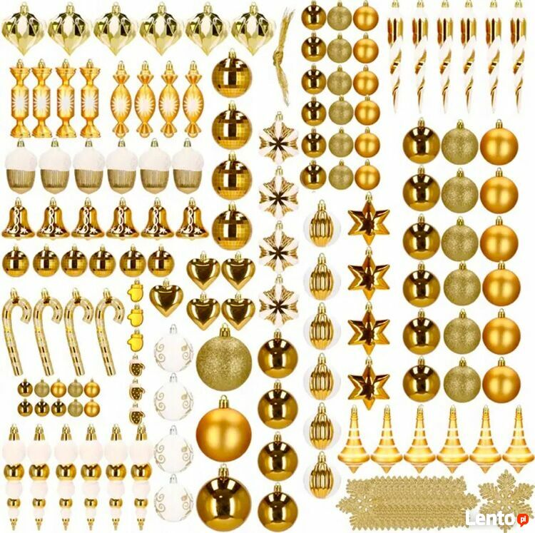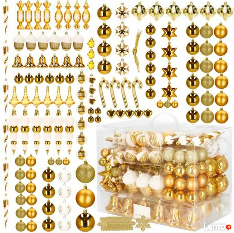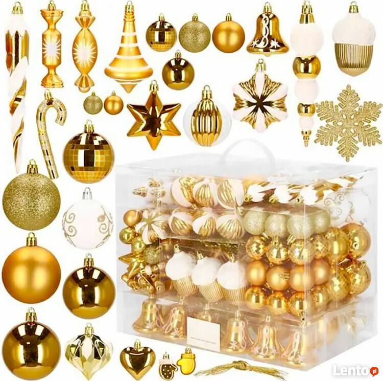Złote gwiazdki i serca , eleganckie sopelki i płaskie gwiazdy dodają świątecznemu wystrojowi nutkę uroczystego splendoru . Biało-czerwone kolory bombek , symbolizujące radość i świąteczną magię, rozświetlą Twoją choinkę, tworząc niezapomnianą atmosferę.