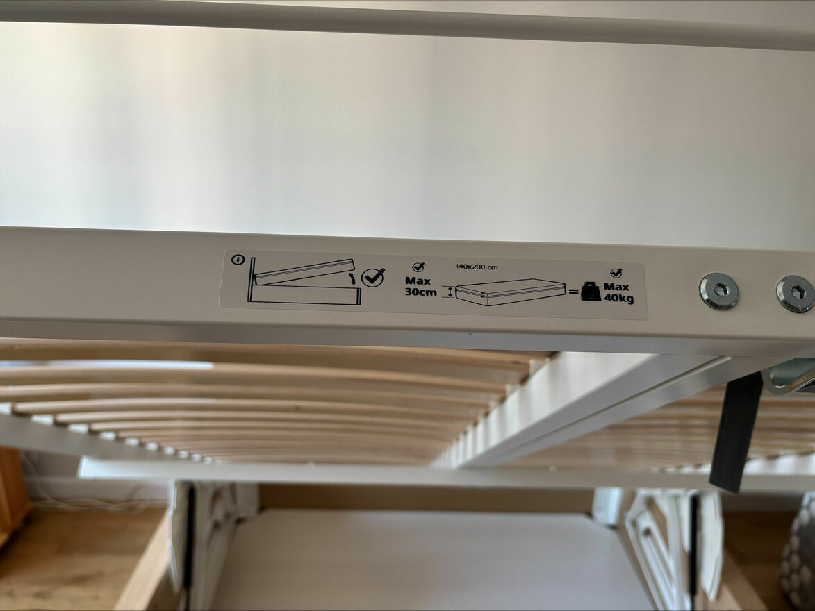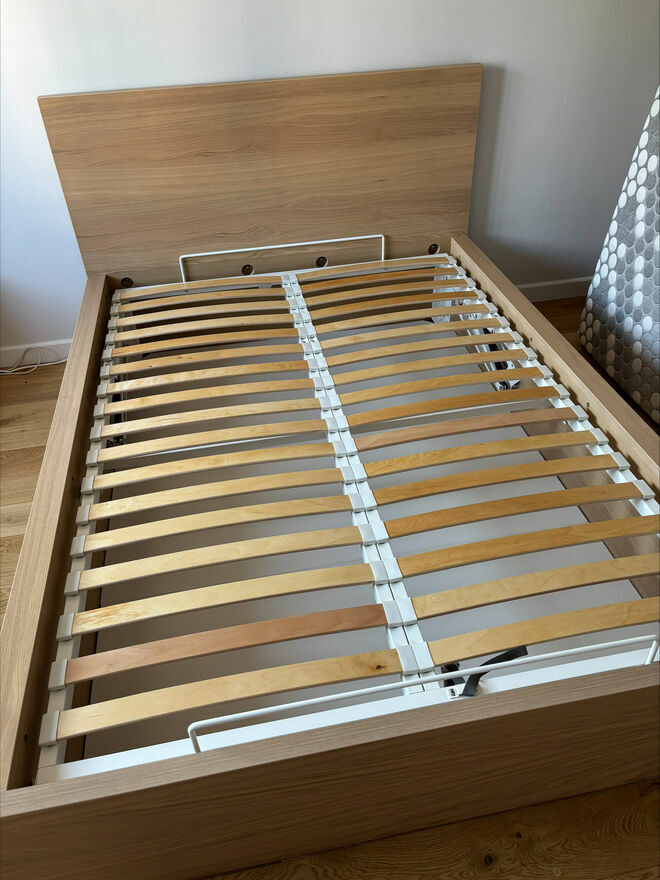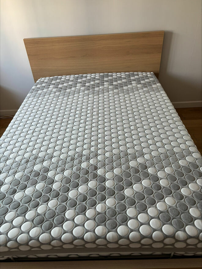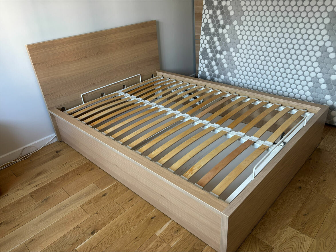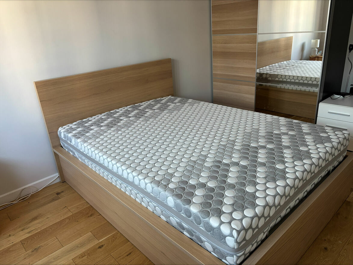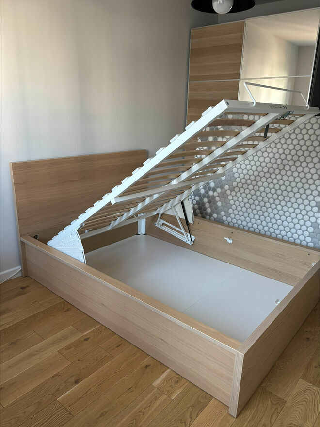 - Rama łóżka: nowoczesny design w kolorze dębu, pasuje do każdego wnętrza. Stan idealny.