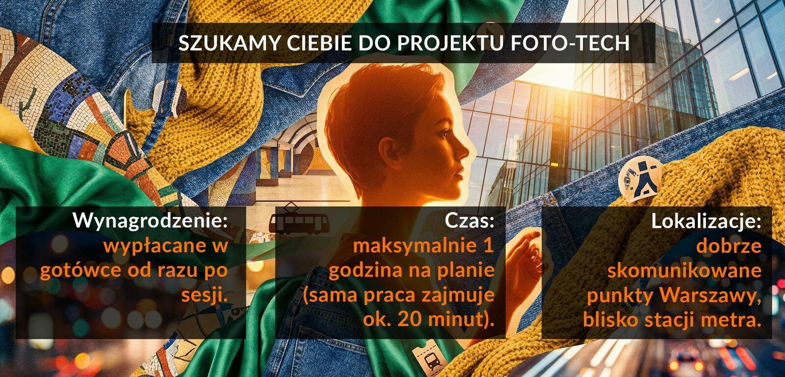 Krótka sesja zdjęciowa w Warszawie – 100 zł za 1 hPoszukujemy osób w wieku 18–60 lat do udziału w krótkiej sesji zdjęciowej realizowanej w centrum Warszawy. Nie wymagamy profesjonalnego pozowania.