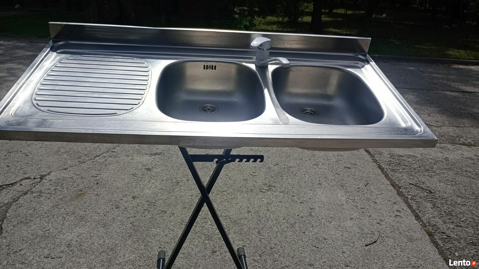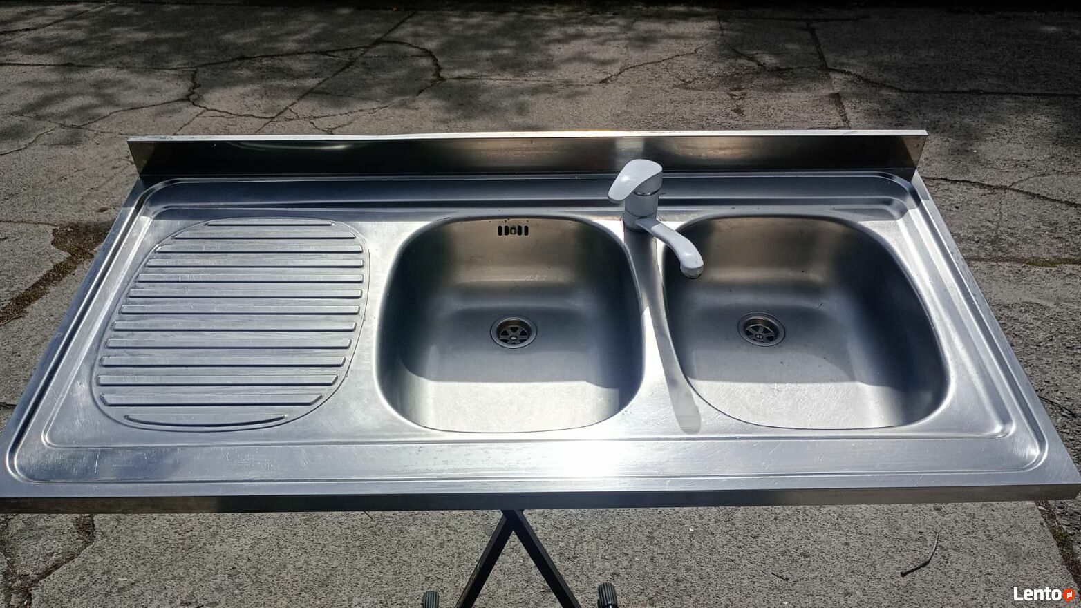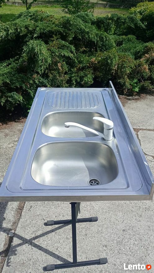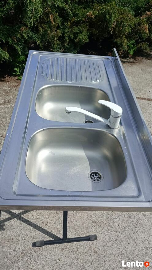 Zlewozmywak stalowy nakładany, dwukomorowy, z ociekaczem, w zestawie bateria. Produkt przeznaczony do dużych kuchni.Wykończenie jest gładkie a także są odporne na szok termiczny, zarysowania i zabrudzenia.