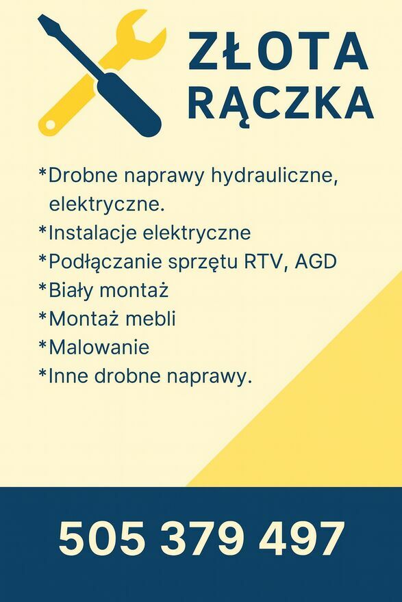 Szukasz solidnej złotej rączki, która szybko i fachowo ogarnie usterki w domu lub mieszkaniu?Dobrze trafiłeś — wykonuję drobne naprawy, montaże i prace wykończeniowe na terenie Warszawy i w okolicach.