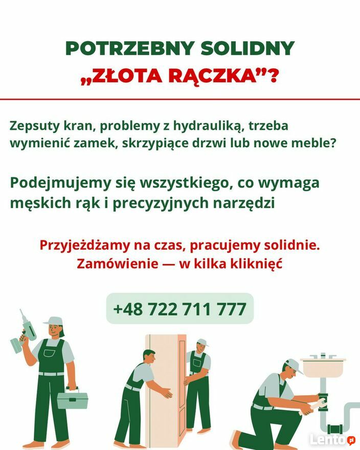 Złota rączka — usługi naprawczeOferuję kompleksowe usługi w zakresie drobnych napraw, prac remontowych oraz prac wykończeniowych w domach, mieszkaniach i biurach.