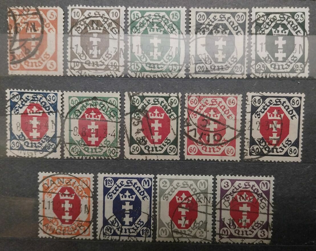 Znaczki pocztowe Danzig, zestaw Fi 67-80 kasowane.