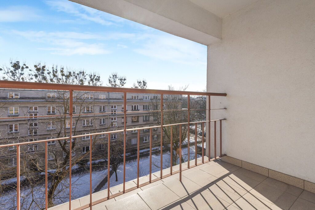 loggia z widokiem na zielone podwórko. W drugim pokoju balkon