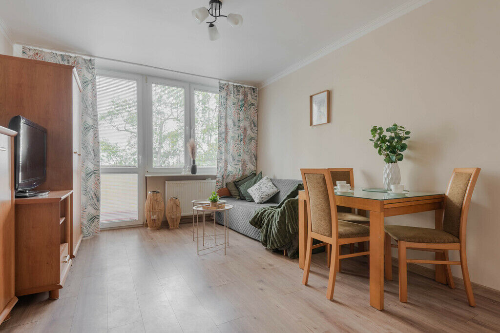 Mieszkanie jest umeblowane i wyposażone w sprzęt AGD. Niedawno