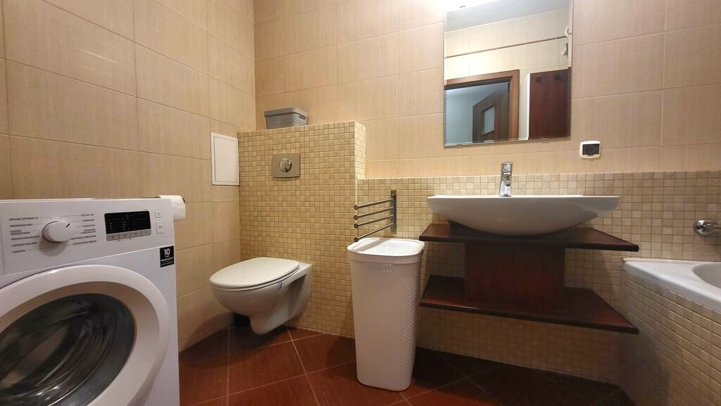 Łazienka — wanna, pralka, wc,
