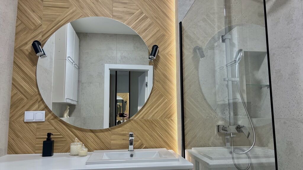 Elegancka łazienka – przestronna, z nowoczesnym prysznicem typu