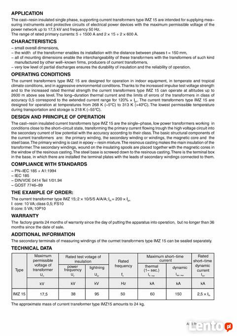 zwar przekładnik prądowy IMZ 15 45Va 50/5 A